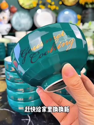 句途十只祖母绿米饭碗##我的天呐,这个祖母绿米饭碗真的太高级了!加厚陶瓷釉下彩工艺,抗磨耐摔,而且还是内外双色的设计,祖母绿搭配奶白色,真的绝美!容量刚刚好,用来吃饭喝汤都很合适。
